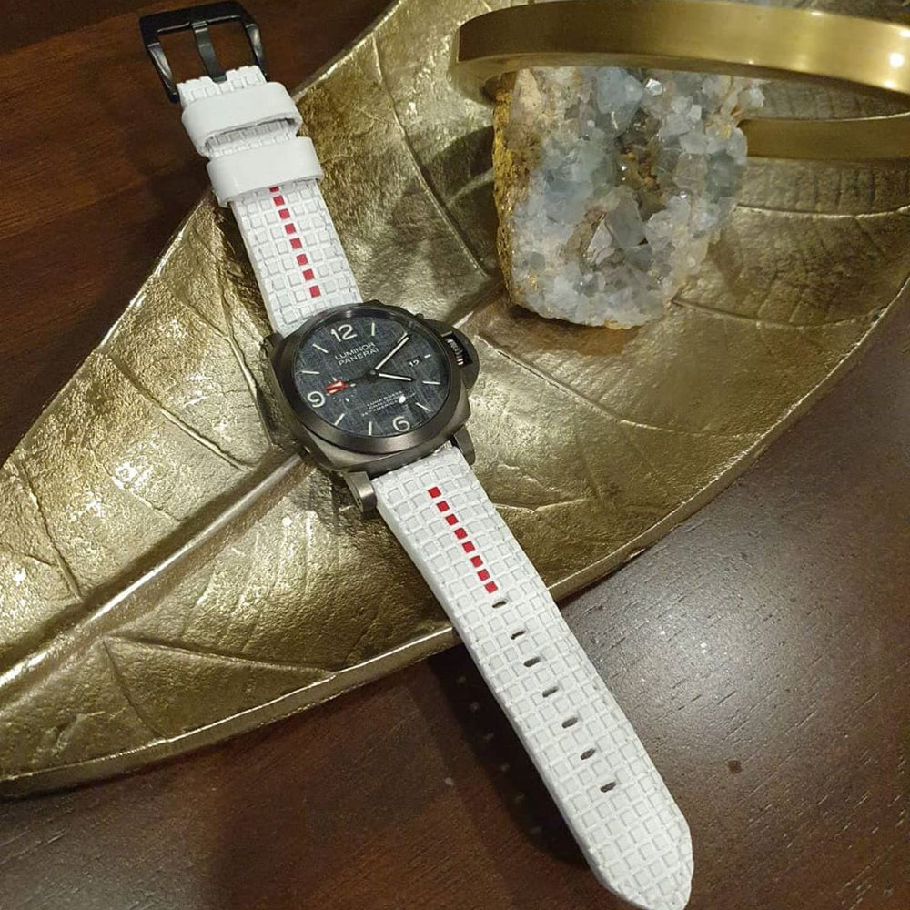 **All of our straps are Handcrafted by our experienced artists and are all bespoke, therefore Crafting an Extreme White Chessboard with Red Stripe for any of your watches and personalized sizing is our specialty. We have been making straps for big watch brands like Rolex, Patek Philippe, Hublot, Breitling, Audemars Piguet (AP), Tudor, Omega, Seiko, Panerai, and almost any other watch that you own for over 15 years of craftsmanship experience. Discuss with us now the straps you and your watch deserve!