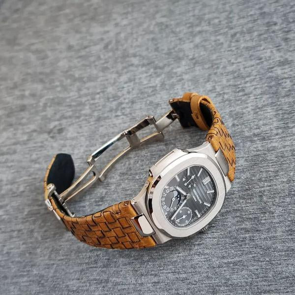 All of our straps are Handcrafted by our experienced artists and are all bespoke. Therefore Crafting the Weaved 360 Tan leather strap for any of your watches and personalized sizing is our specialty. We’ve been making handmade straps for big watches like Rolex, Patek Philippe, Hublot, Audemars Piguet (AP), Omega, Panerai, and other watches for more than 15 years. Discuss with us the straps you and your watch deserve!