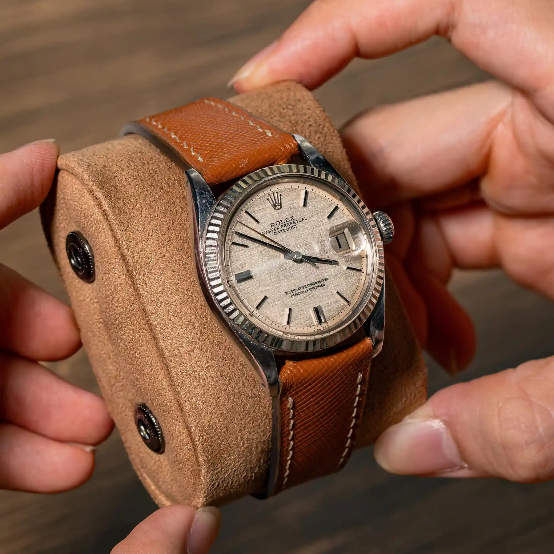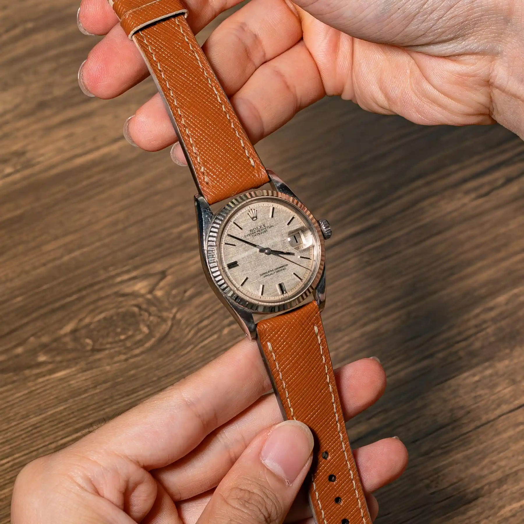 Style: The Cognac Saffiano Strap is designed for watch enthusiasts who appreciate refined simplicity. Crafted from premium Saffiano leather, this strap brings a distinctive texture that instantly elevates any timepiece. The clean-cut design offers a sleek, modern look without unnecessary details. It’s a perfect match for watches like the Rolex Datejust, adding subtle sophistication without overpowering the watch’s vintage character.