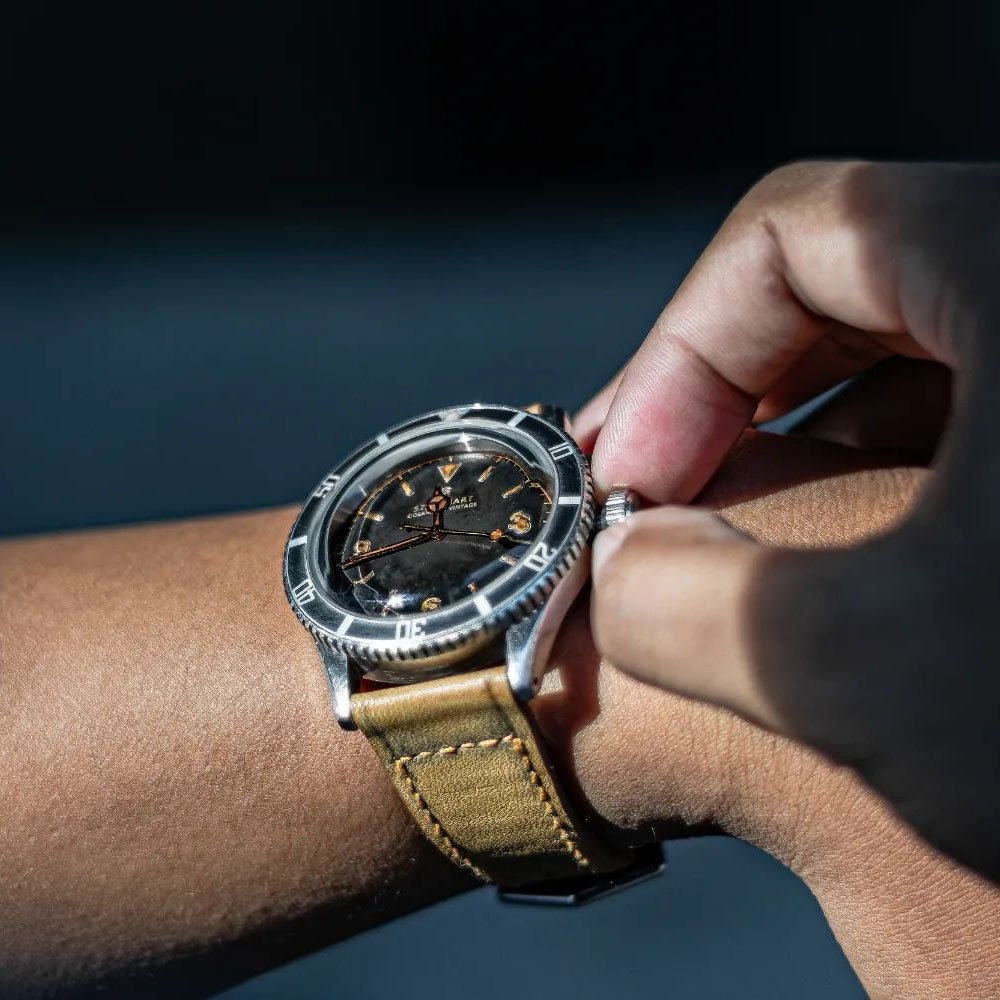 But what is the Caitlin Series? It debuted more than a decade ago, originally designed by chance. Peter Gunny, founder of Gunny Straps, discovered a vintage strap in a Panerai catalog. Inspired, he wanted to recreate that classic look.